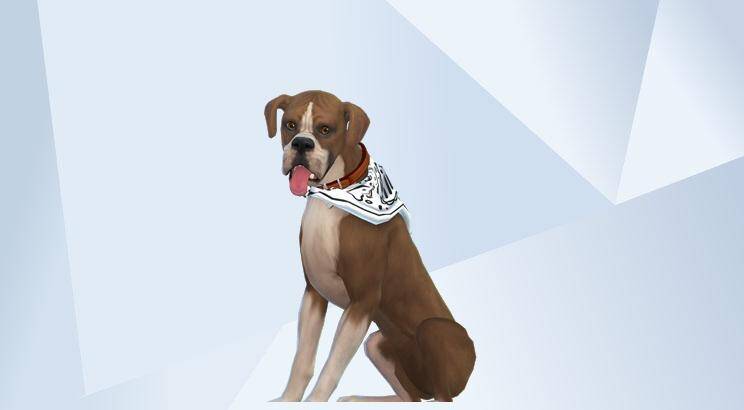 Fawn/white boxer dog